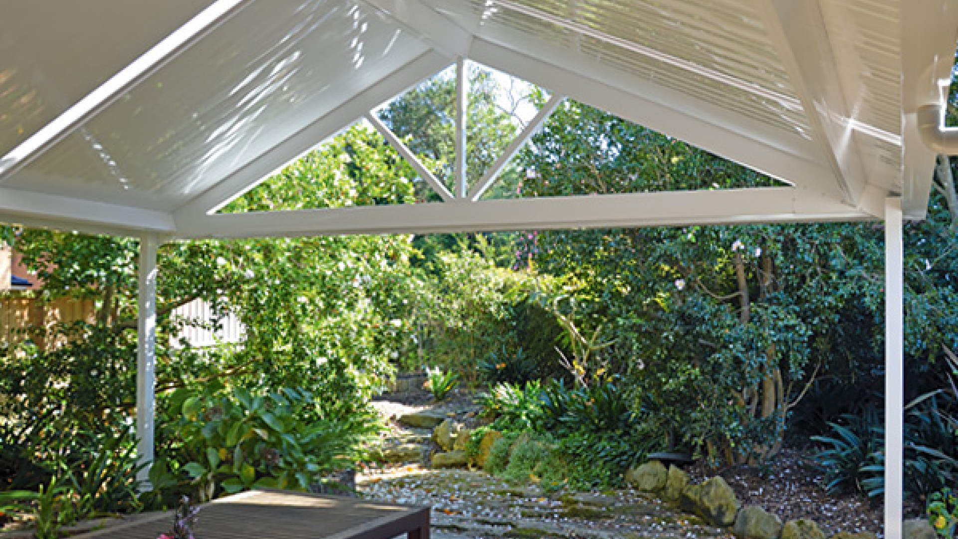 - Stramit Sunset® panelling’s interlocking panels provide water-tight, attractive support and structure to the roof of your pergola
