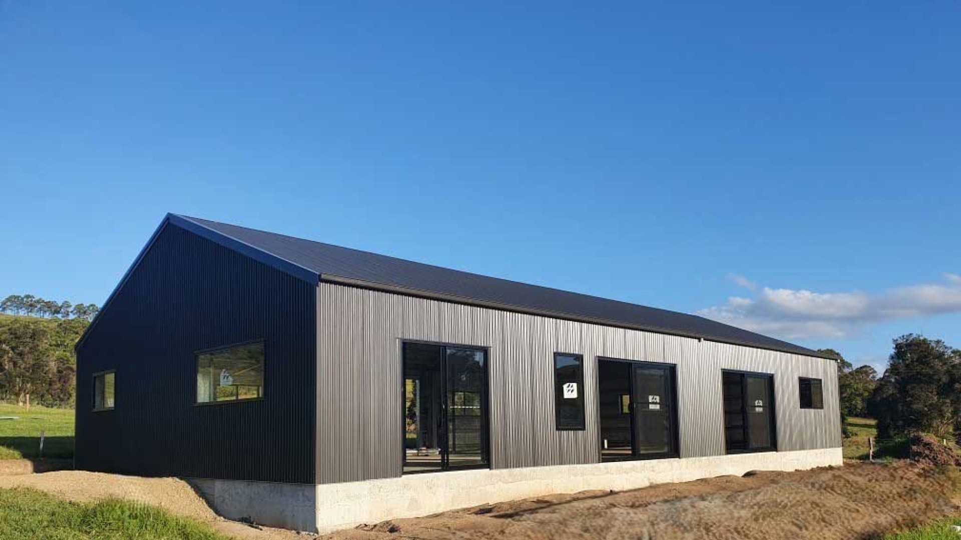 Project is specially engineered to livable standards, erected on slab with tailor made windows and doors by AMIA in Colorbond Monument.
