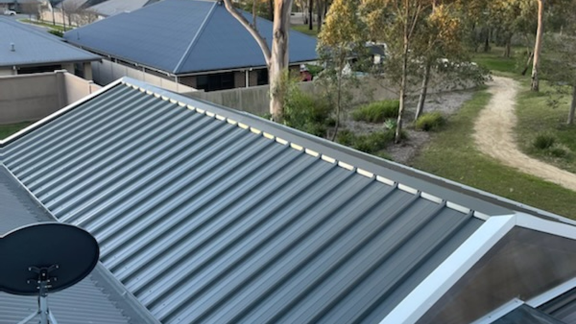 Combination of Colorbond Woodland Gray, surfmist, Sunset Decking roof cladding,